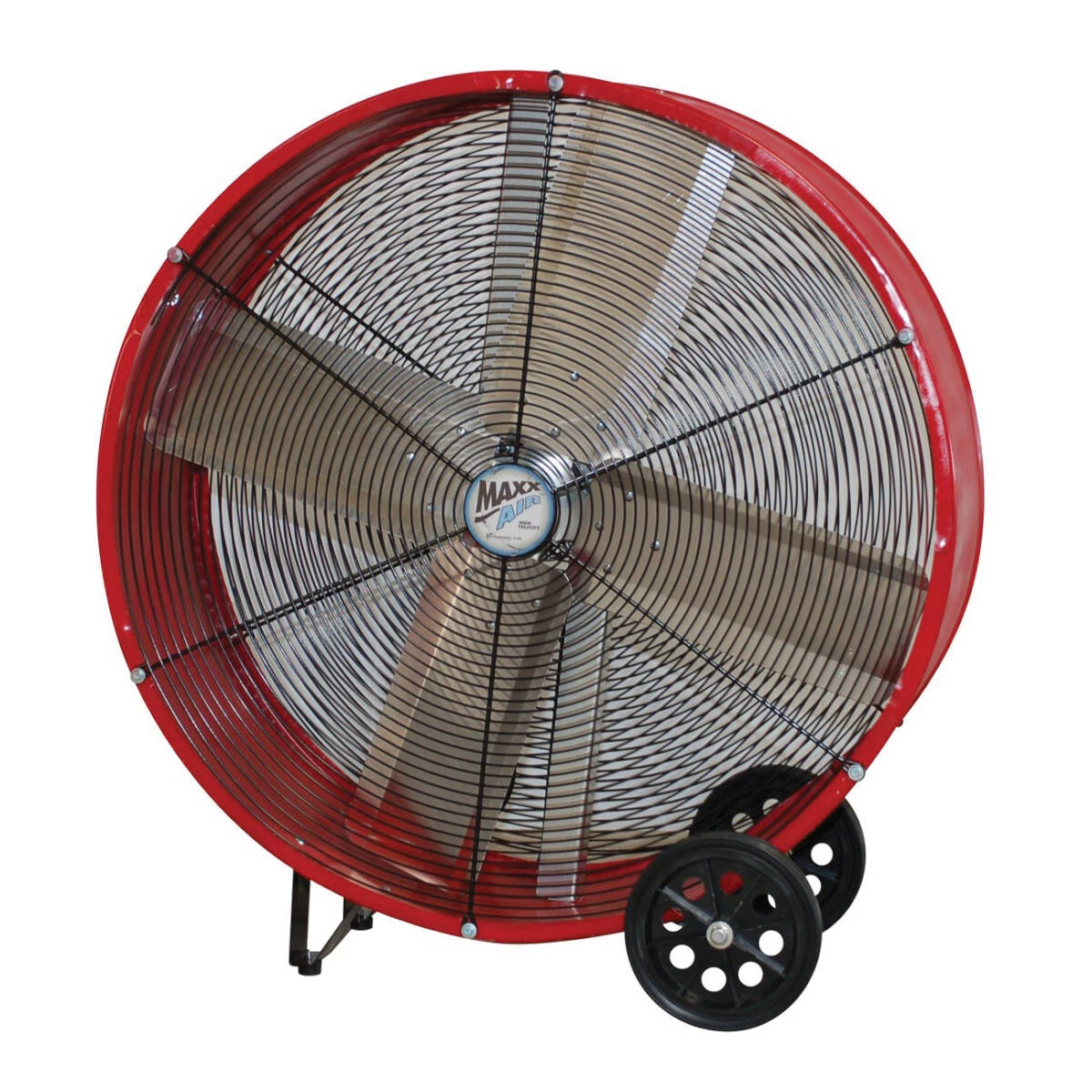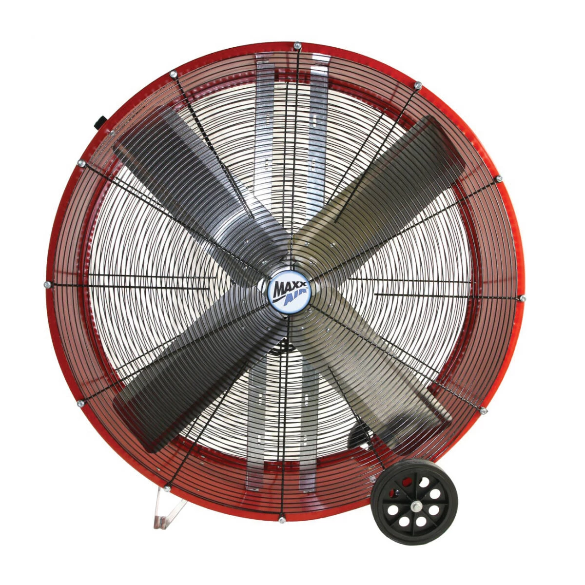 The 36 in Maxx Air direct drive barrel fan is ready to tackle your commercial cooling needs and is a perfect fit for construction site jobs and other indoor air circulation applications, including keeping people or machines cool, helping to dry water-damaged areas and to speed up the curing process of concrete or tile projects. Commercial environments demand durable fans this model stands up to wear and tear and is built of 22 ga steel and features rust-resistant grilles. This fan is fully assembled and ready to go to work with a built-in handle and 7 in rubber wheels for easy mobility. A four blade design distributes the air evenly across your space whether you choose hi or low-speed settings. High Velocity Drum Fan