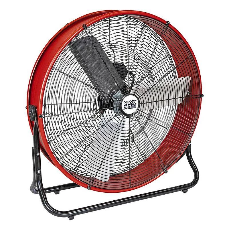 Bid your box fan goodbye! The Maxx Air 24-inch Narrow Profile Barrel Fan is a powerful and portable air circulator used to provide airflow indoors in an industrial shop or warehouse, commercial building, gym, construction site, or even at home in the garage. This high velocity fan has a dark red, low profile metal housing to save space on your floor, tilt adjustment knobs to set your fan at your desired angle, and includes built-in rubber feet for quiet performance along with a cord wrap to keep the 4.5-foot power cord safely stowed away when not in use. Minimal assembly is required to get started, and the air mover’s lightweight design allows you to easily pick it up and move it from room to room as needed. Enjoy 3 cooling speeds and a 60-degree tilt angle to direct the airflow wherever you need it most.