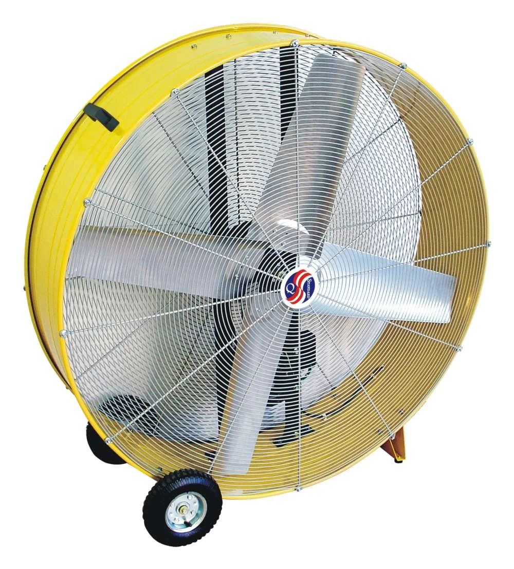 Need to cool down or get air moving a stuffy shop or warehouse? Here’s just what you need. The Q Standard 42 in Belt Drive Drum Fan features a 2-speed, 1-HP motor and four aerodynamically balanced blades to produce up to 17,600 CFM. It runs quieter and creates a lower load on the motor, which prolongs the motor’s life and maximizes air flow. Wheels make it portable, too. High Velocity Drum Fan