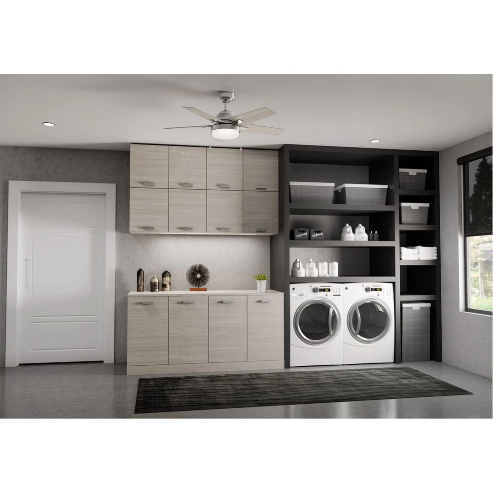 The Bartlett indoor ceiling fan is perfect for casual and soft modern rooms. The Fresh White finish adds a clean look to modern rooms while the Brushed Nickel complements other fixtures in your casual rooms. This small ceiling fan provides LED light and whisper quiet airflow in small rooms like laundry rooms, home offices, and guest bedrooms.