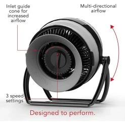 Vornado HELIX1 Personal Desktop Tower Fan With 2 Speed Settings, Touch Controls – Black