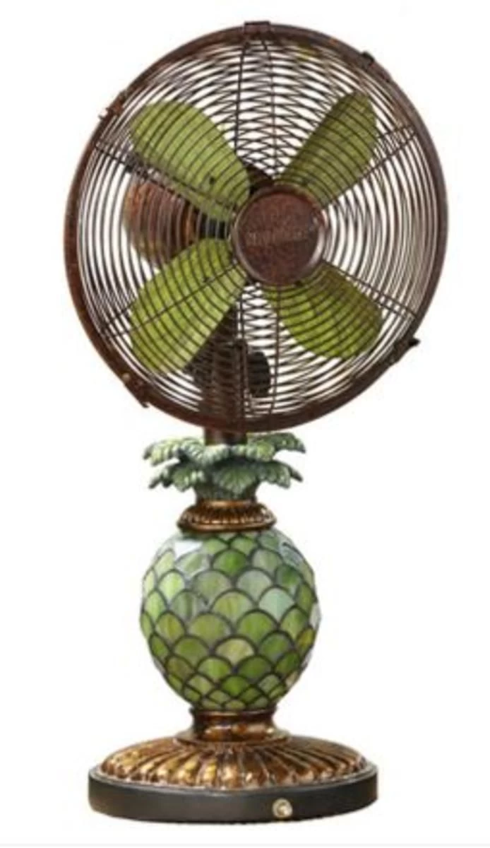 Mosaic Glass Pineapple illuminates when night light function is turned “on”. Tropical design features oscillating fan with whisper-quiet 20 watt motor. options for maximum cooling comfort. Single Speed Motor.