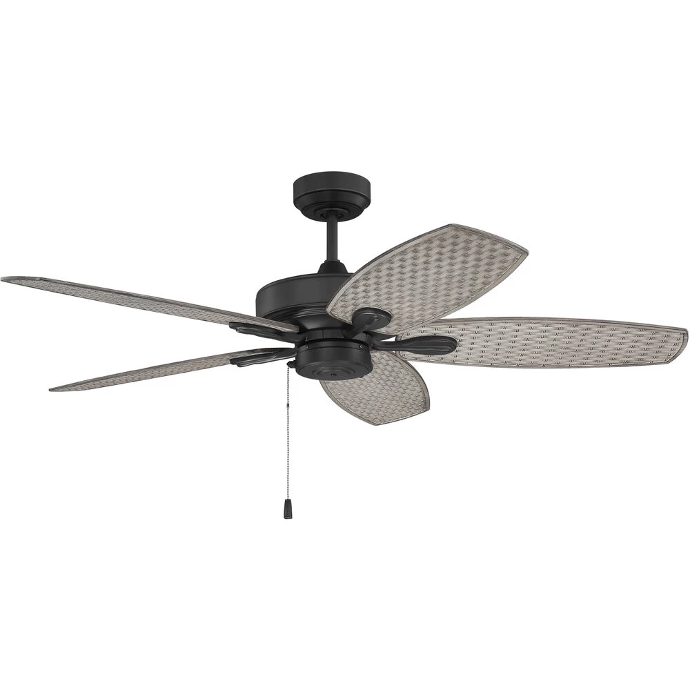 Complete your patio oasis with our Retreat 52″ ceiling fan. This wet rated outdoor fan featuring custom all weather blades in an enlarged woven pattern delivers great performance with the three speed, reversible motor built to withstand the elements. Light kit and remote control adaptable.
