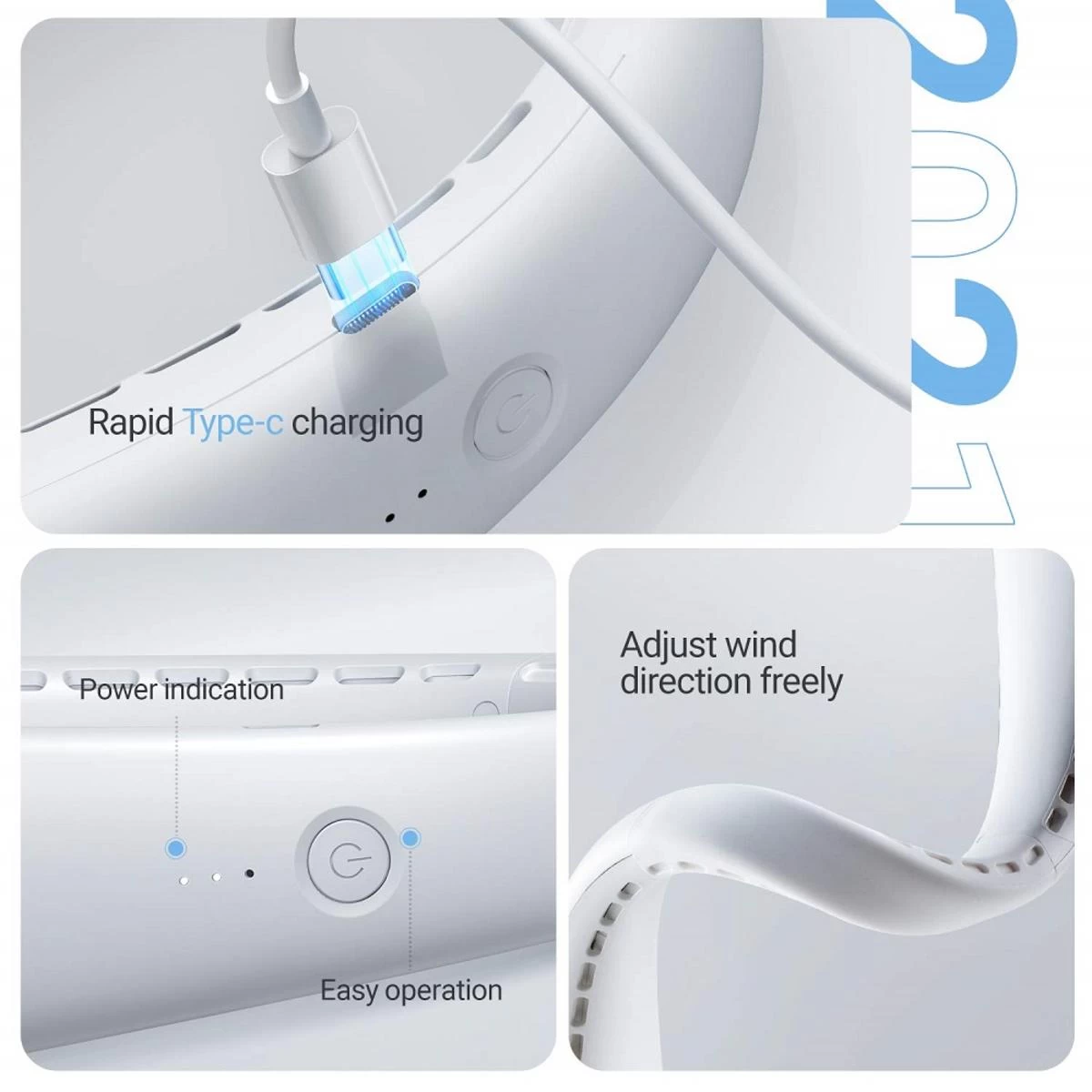 - 360�Cooling neck fan & Double wind